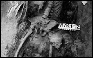 Acima: O padrão das tumbas encontradas, juntamente com a imagem de uma Guerreira em sua tumba, com pernas arqueadas, fato que prova que esta mulher passava muito tempo sobre um cavalo.